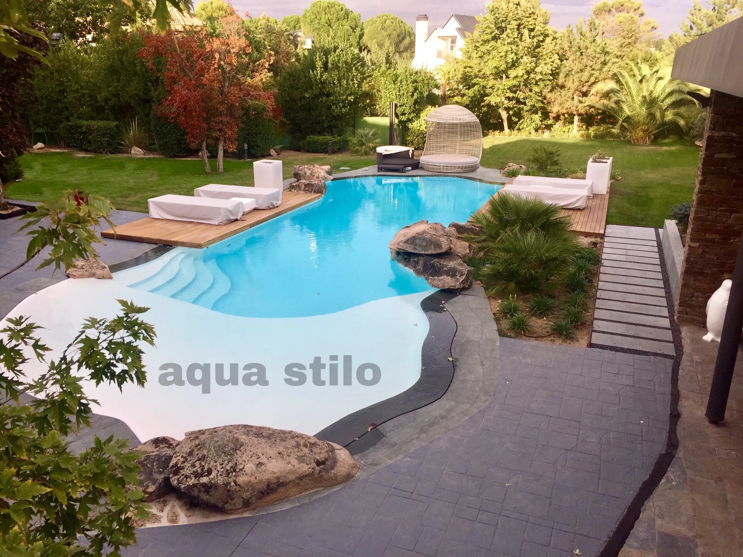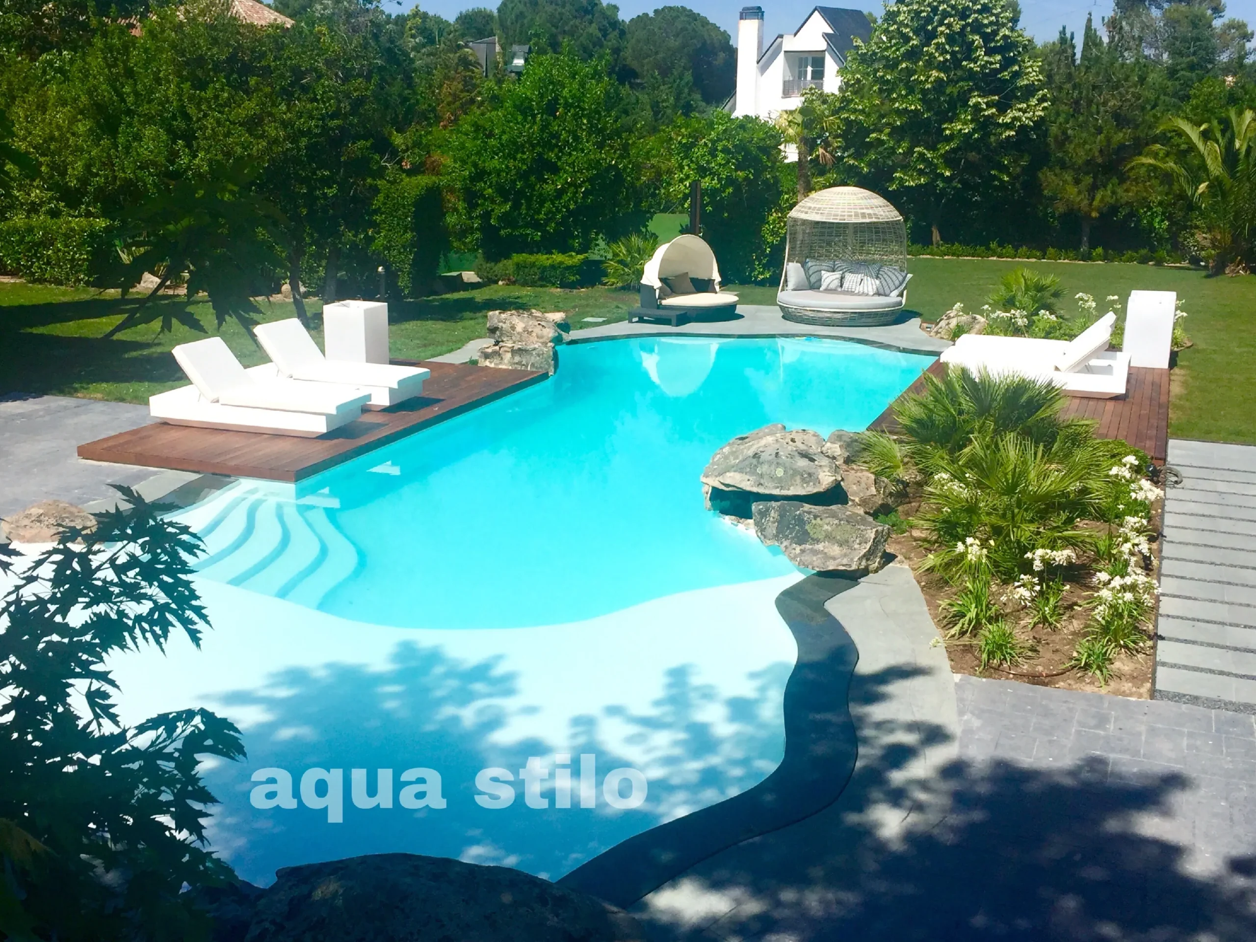 Piscinas funcionales y estéticas, creadas en armonía con el entorno de la parcela o jardín, siempre asociadas a elementos naturales ya existentes o bien como núcleo a partir del cual desarrollar el proyecto paisajístico